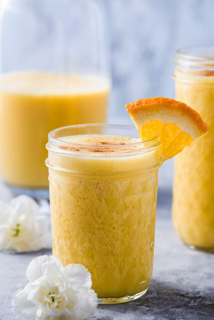 Mango obrać i pokroić w kostkę. Wrzucić do blendera i rozdrobnić. Dodać pozostałe składniki i zblendować. Podawać udekorowane plasterkiem pomarańczy i szczyptą cynamonu. […]