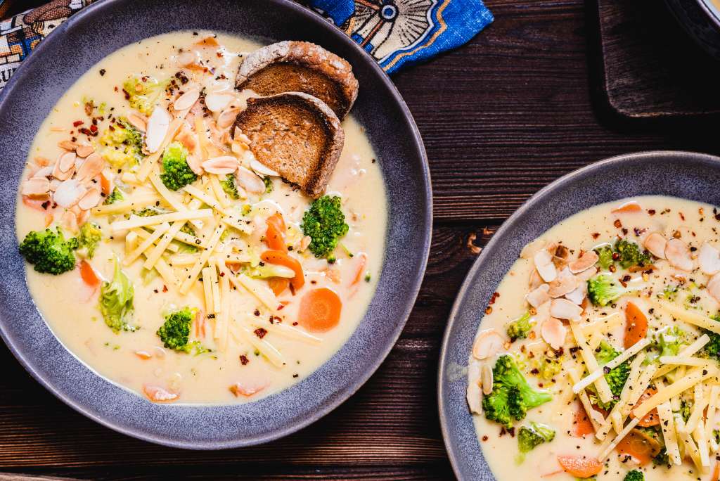 W garnku rozgrzać oliwę z masłem. Na rozgrzany tłuszcz wrzucić cebulę pokrojoną w kostkę i podsmażać około minuty. Następnie dodać pokrojone marchewki i smażyć jeszcze 5 minut. Następnie dodać czosnek przeciśnięty przez praskę i smażyć około minuty. Dodać mąkę i smażyć kolejną minutę. Dodać bulion i wymieszać dokładnie z mąką. Następnie dodać mleko i musztardę. […]