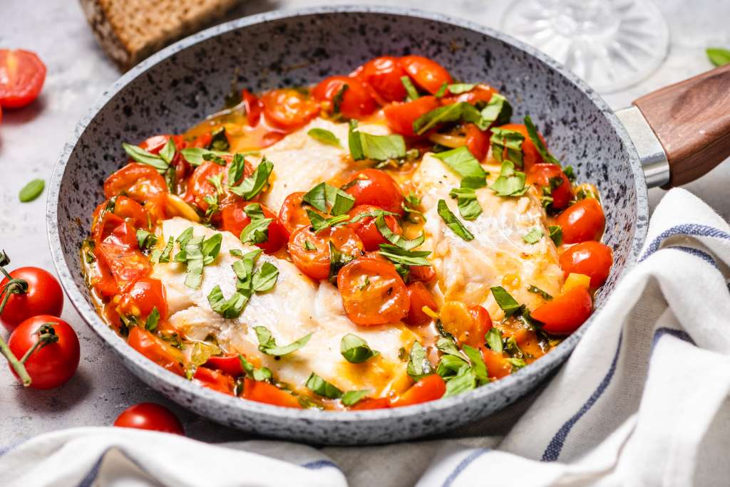 Rybę podzielić na mniejsze kawałki, przyprawić solą i pieprzem. Usmażyć na oliwie, smażąc po kilka minut z każdej strony. Usmażone kawałki ryby odłożyć na talerzyk. Czosnek pokroić w plasterki, pomidorki przekroić na pół. Na patelnię dodać oliwę z oliwek i rozgrzać. Na oliwie podsmażyć przez kilka minut plasterki czosnku, a następne dodać pomidorki. Smażyć na […]