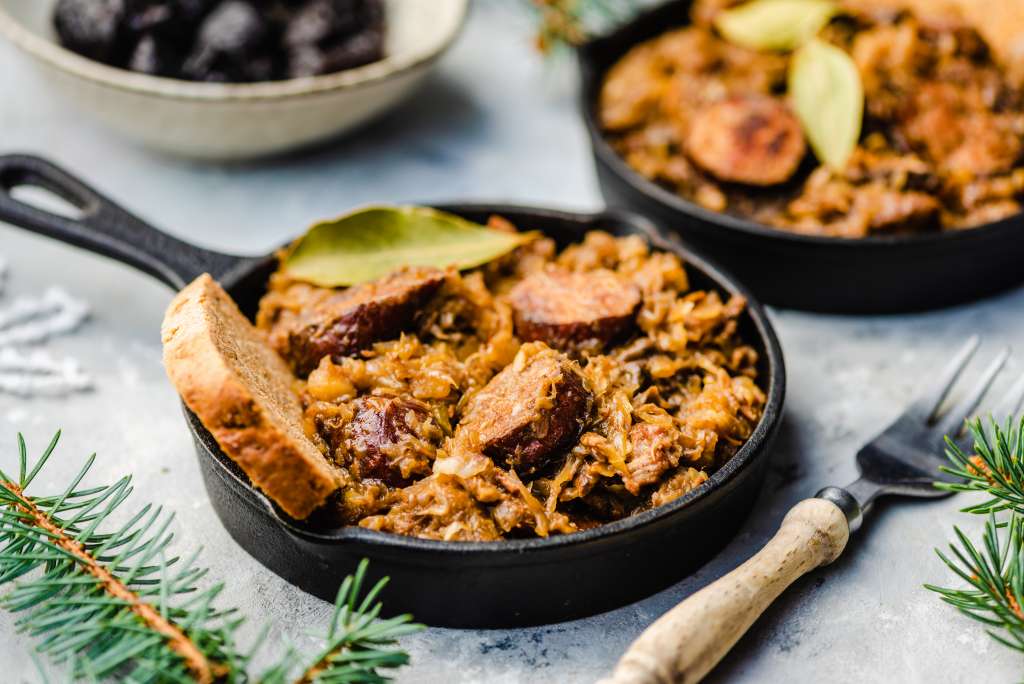 Boczek pokroić w kostkę. Wrzucić do garnka z grubym dnem. Smażyć na średnim ogniu, pod przykryciem, przez około 15 minut, aż tłuszcz się wytopi, a boczek ładnie się zarumieni. Wołowinę, oraz wieprzowinę również pokroić w kostkę i dodać do garnka. Przyprawić solą i pieprzem i smażyć pod przykryciem na średnim ogniu przez około 20 minut, […]