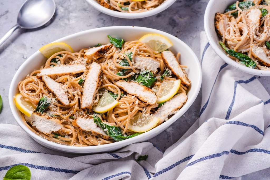 Piersi z kurczaka umyć, przyprawić solą, pieprzem, ziołami prowansalskimi i 1 łyżką oliwy. Grillować na patelni grillowej z dwóch stron. Zdjąć z patelni i odstawić. Makaron ugotować al dente w osolonej wodzie. Odstawić 1 szklankę wody z gotującego się makaronu. W garnku którym gotował się makaron rozgrzać oliwę i podsmażyć czosnek pokrojony w plasterki przez […]