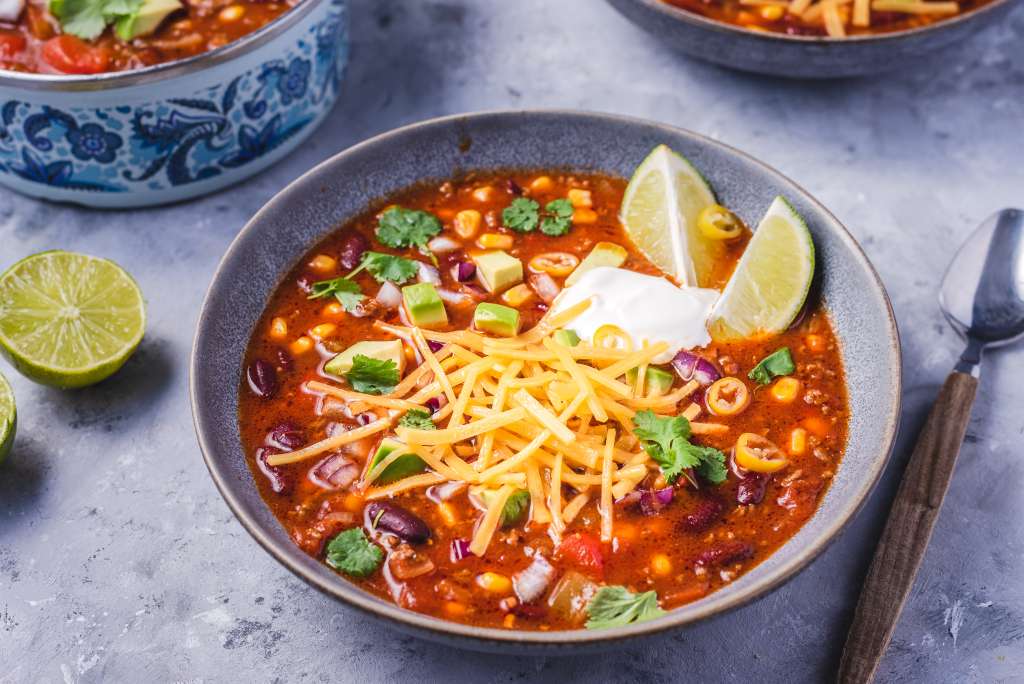 W garnku z grubym dnem rozgrzać oliwę z oliwek. Na rozgrzaną oliwę dodać mięso mielone i cebulę pokrojoną w kostkę. Smażyć rozgniatając mięso na patelni. Kiedy mięso i cebula będą usmażone dodać przeciśnięty przez praskę czosnek i smażyć kolejną minutę. Dodać pomidory w puszce, bulion, przecier pomidorowy i przyprawy. Zagotować, zmniejszyć ogień i gotować na […]