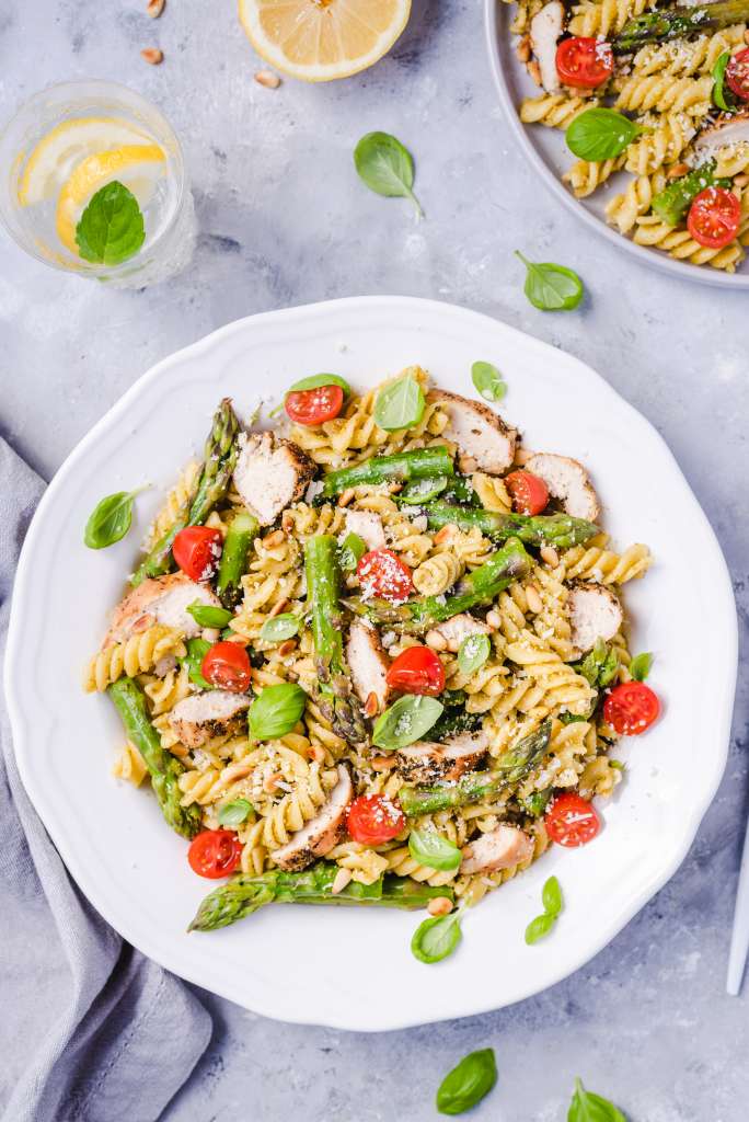 Makaron ugotować al dente. Szparagi pozbawić zdrewniałych łodyg i ugotować, tak żeby nadal były chrupiące i jędrne. Kurczaka przyprawić ziołami prowansalskimi, solą i pieprzem. Kurczaka grillować na patelni grillowej. 4-6 minut z jednej strony i tyle samo czasu z drugiej strony. Odstawić na kilka minut. Następnie pokroić w plasterki. Do miski przełożyć ugotowany makaron, kawałki […]