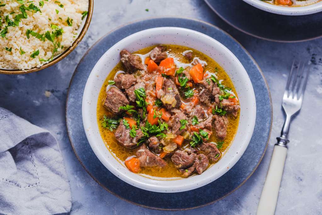 Mięso pokroić w kostkę. Obtoczyć w soli, pieprzu i cynamonie. Marchewki, seler i cebulę pokroić. Czosnek i imbir zetrzeć na tarce. Na dużej patelni rozgrzać olej kokosowy i obsmażyć mięso z każdej strony do zarumienienia. Dodać cebulę i smażyć aż cebula się zarumieni. Dodać czosnek, imbir, drobno posiekany rozmaryn i smażyć około 3 minut, uważając […]