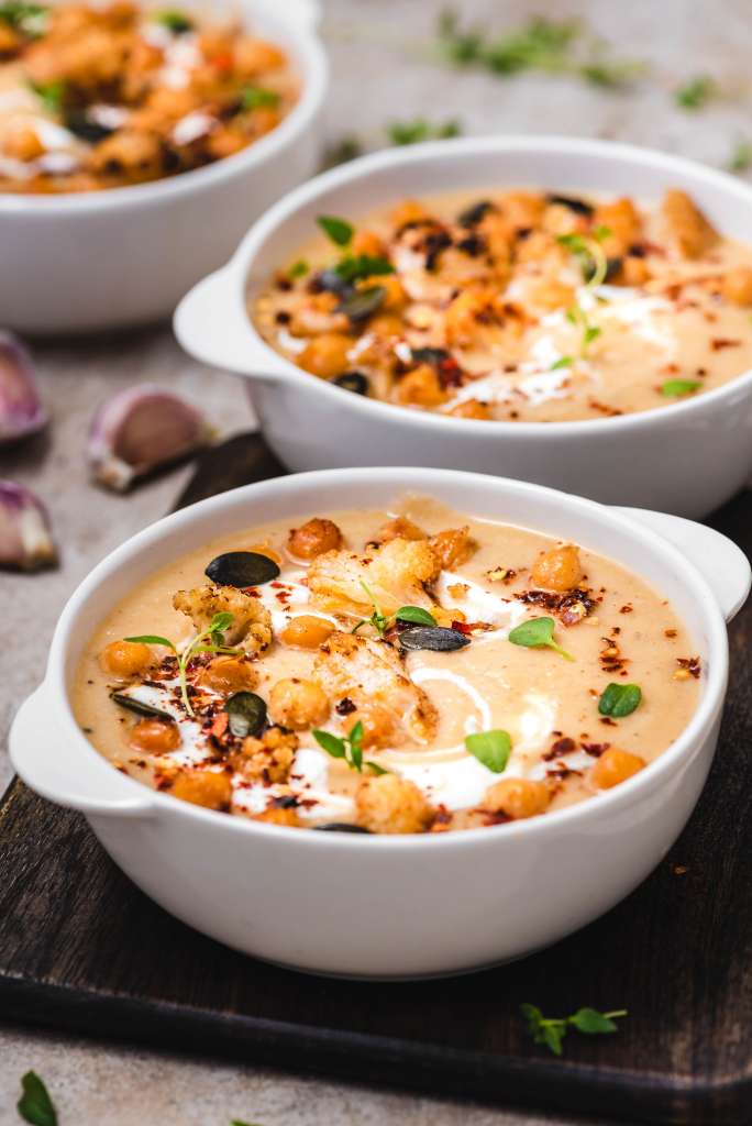Rozgrzać piekarnik do 200 stopni. Ciecierzycę wypłukać i odsączyć. Kalafior rozmrozić i podzielić na mniejsze części. Ząbki czosnku obrać. Ciecierzycę, kalafior i czosnek przełożyć do miski. Dodać 3 łyżki oliwy, paprykę, kumin i sól. Wymieszać. Wyłożyć na blachę wyłożoną papierem do pieczenia i piec około 30 minut (w połowie pieczenia wymieszać).Wyjąć z piekarnika i odłożyć […]