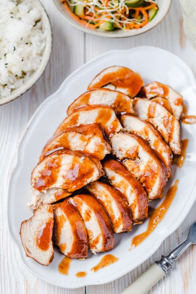 Dzień wcześniej zamarynować kurczaka. Wszystkie składniki marynaty przełożyć do rondla i zagotować . Zdjąć z ognia i ostudzić. W przygotowanej marynacie, marynować kurczaka przez całą noc. Piekarnik nagrzać do 190 stopni. Kurczaka przełożyć do naczynia żaroodpornego. Pozostałą marynatę odstawić na później. Kurczaka piec około 25 minut, podlewając pozostałą marynatą kilka razy podczas pieczenia. Po tym […]