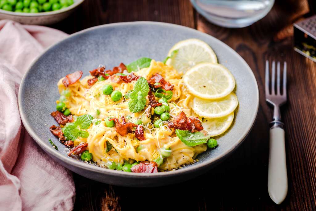 Boczek pokroić na małe kawałki. Na rozgrzaną patelnię wrzucić kawałki boczku i usmażyć na chrupiąco. Zdjąć z patelni i odłożyć na ręcznik papierowy. Z patelni odlać połowę tłuszczu ze smażenia boczku resztę zostawić. Cebulę pokroić w kostkę, czosnek przecisnąć przez praskę. Cebulę i czosnek smażyć na tłuszczu z boczku na małym ogniu. Następnie zdjąć cebulę […]