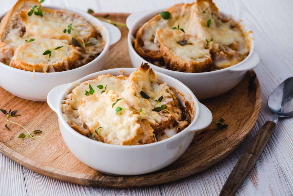 Sposób przygotowania: Ściąć górę z główek czosnku, tak żeby odsłonić ząbki. Przełożyć do naczynia żaroodpornego, polać oliwą, oprószyć solą, piec w temperaturze 200 stopni przez około 30 minut. Cebulę obrać, przekroić na pół i pokroić w plasterki. W dużym garnku z grubym dnem rozgrzać oliwę, oraz masło. Dorzucić cebulę i podsmażać, do momentu aż cebula […]
