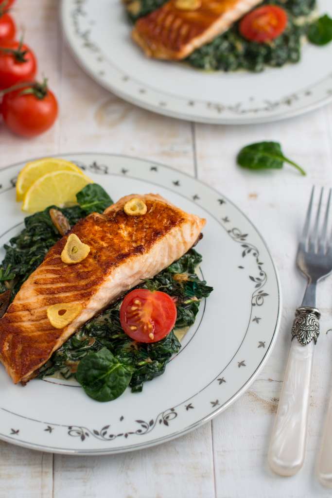 Łososia umyć, osuszyć i przekroić na 2 części. Przyprawić sosem sojowym i delikatnie natrzeć oliwą. Grillować na patelni grillowej zaczynając od strony skóry. Po kilku minutach, kiedy skórka ładnie się zarumieni przewrócić łososia na drugą stronę i grillować jeszcze przez chwilę. W międzyczasie na drugiej patelni rozgrzać pozostałą oliwę. Czosnek pokroić w cienkie plasterki […]