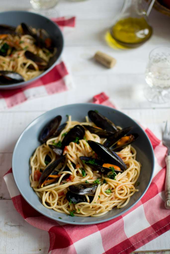 Małże oczyścić i moczyć przez około godzinę w osolonej wodzie, a następnie przepłukać pod bieżącą wodą. Otwarte małże popukać delikatnie, jeśli się nie zamkną należy je odrzucić. Ugotować makaron. Na patelni rozgrzać kilka łyżek oliwy z oliwek z posiekaną cebulą i czosnkiem pokrojonym w plasterki. Gdy czosnek i cebula zaczną się rumienić, wrzucić małże i […]