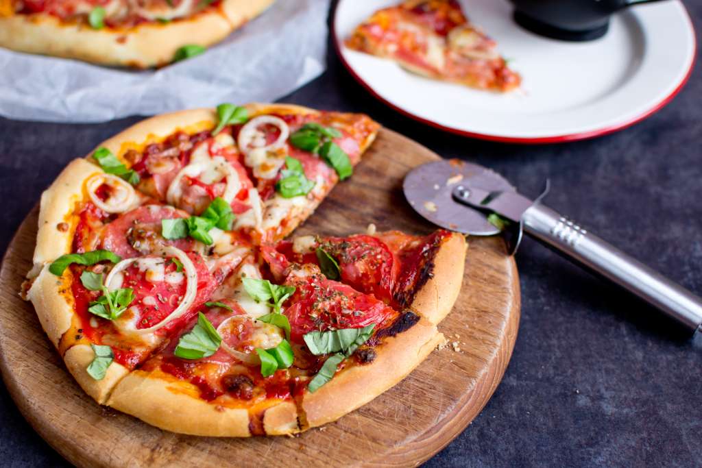 Do dużej miski wsypać pokruszone drożdże, cukier, 1/3 szklanki ciepłej wody oraz 2 łyżki mąki. Wymieszać, przykryć ściereczką i odstawić w ciepłe miejsce na 15 minut . Pozostałą część mąki przesiać do miski i dodać sól oraz oliwę. Składniki mieszać za pomocą drewnianej łyżki i dolewać stopniowo pozostałą część wody. Połączone składniki przełożyć na stolnicę […]