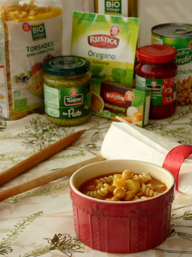Cebulę obrać i posiekać. Seler naciowy pokroić w cienkie plasterki. Ciecierzycę odsączyć z zalewy. Do garnka wlać oliwę, dodać masło, zeszklić cebulę i seler naciowy – ok. 3 minut często mieszając. Dodać kawałki kurczaka i przysmażamy cały czas mieszając – kolejne 2 minuty. Dodać koncentrat, oregano, wodę, bulion warzywny, ciecierzycę, zmniejszyć ogień i gotować pod […]
