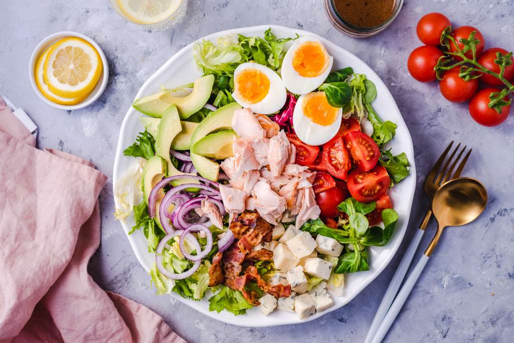 Łososia oddzielić od skóry. Boczek pokroić w plasterki i usmażyć na chrupiąco na rozgrzanej patelni. Jajka ugotować na półtwardo. Wymieszać wszystkie składniki dressingu razem i przyprawić. Awokado pokroić w plasterki i skropić cytryną. Pomidorki przekroić na pół. Ser pokroić w kostkę. Na dużym półmisku ułożyć mix sałat, oraz wszystkie przygotowane wcześniej składniki. Skropić dressingiem i […]