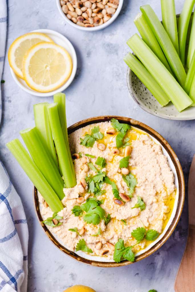 Piekarnik nagrzać do 200 stopni. Kalafior podzielić na różyczki, wyłożyć na blachę przykrytą papierem do pieczenia, skropić oliwą i oprószyć solą. Piec około 20 minut,. Upieczony kalafior przełożyć do blendera, Dodać pozostałe składniki i rozdrobnić na gładką pastę. W razie potrzeby doprawić. Przełożyć do miseczki, udekorować uprażonymi orzeszkami piniowymi i listkami świeżej kolendry. Skropić oliwą. […]