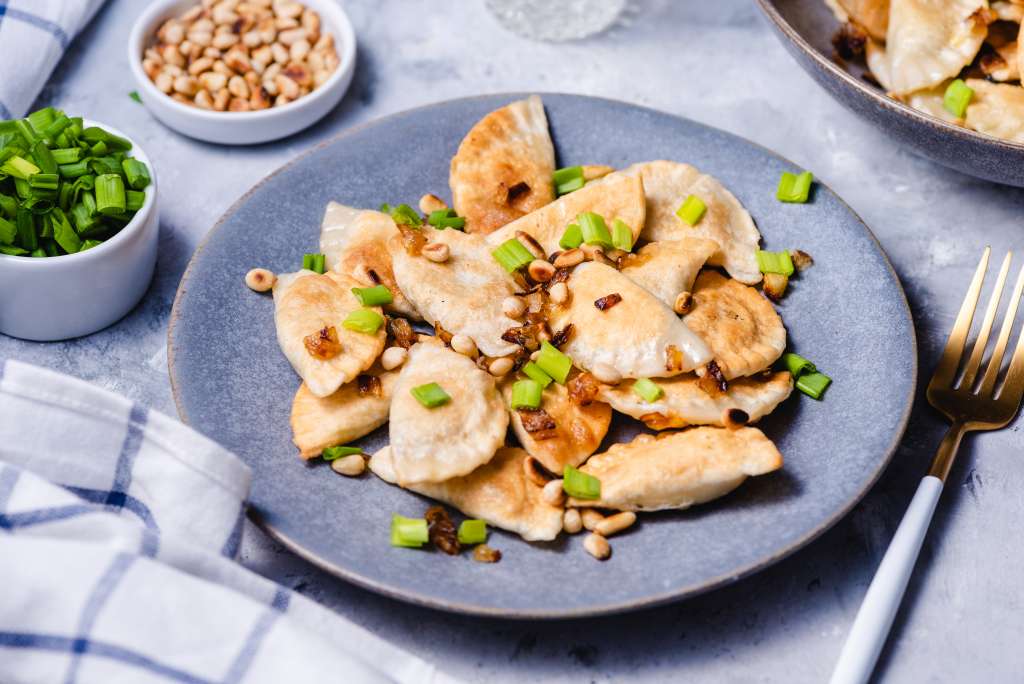 Ciasto na pierogi: Mąkę przesiać, dodać sól. We wrzącej wodzie rozpuścić masło. Stopniowo wlewać do mąki, cały czas mieszając. Wygniatać ciasto mikserem, lub rękami około 8 minut, tak żeby było elastyczne i nie kleiło się. Przełożyć do miski, przykryć wilgotną ściereczką i odstawić na około 30 minut. Farsz: Na patelni rozgrzać oliwę z oliwek. […]