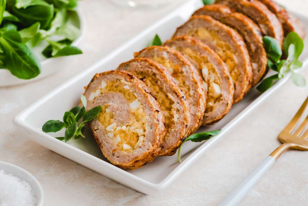 3 jajka ugotować na twardo. Po ostygnięciu, pokroić w kostkę. Cebulę pokroić w kostkę. Zeszklić na patelni na odrobinie oleju, odstawić do ostygnięcia. Mięso mielone przełożyć do miski. Dodać zeszkloną cebulę, jajko, bułkę tartą i natkę. Doprawić solą i pieprzem. Wyrobić na jednolitą masę. Nagrzać piekarnik do 210 stopni. Żółty ser tarty i pokrojone w […]