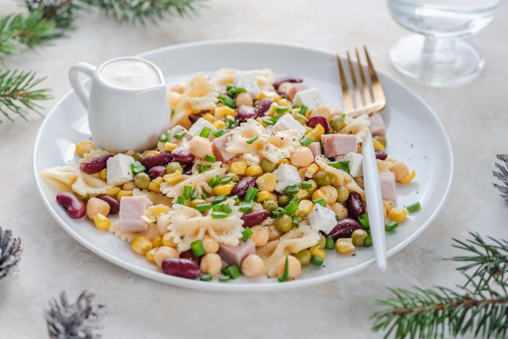 Makaron ugotować wg przepisu na opakowaniu, pozostawić do ostygnięcia. Szynkę i ser feta pokroić w kostkę. Warzywa konserwowe odcedzić na sicie. Wszystkie składniki przełożyć do dużej miski. Musztardę, majonez i jogurt, wymieszać razem i dodać do pozostałych składników. Przyprawić do smaku solą i pieprzem. […]